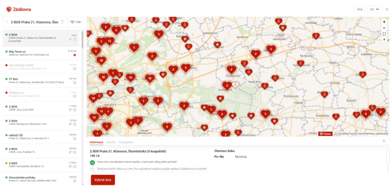 Seznam výdejních míst a Z-Boxů naleznete zde.